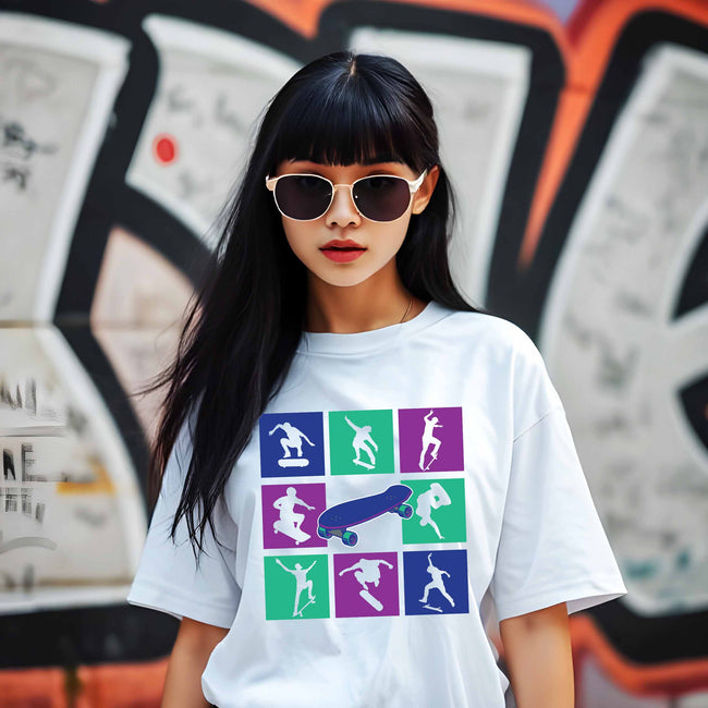 This unisex garment-dyed t-shirt is a perfect blend of comfort and style. With its soft, worn-in texture and relaxed fit, it effortlessly transitions from casual hangouts to semi-formal gatherings. Available in a wide range of sizes from S to 4XL, it caters to various body types, ensuring everyone can enjoy this fashionable staple. The vibrant design adds a playful, energetic vibe, making it ideal for skateboarding enthusiasts or anyone who loves street style. This t-shirt is great for casual outings, skate events, or simply lounging at home. Show off your love for an active lifestyle or gift it to friends during celebrations like birthdays or holidays. It's a versatile piece that can be dressed up or down, making it a must-have addition to any wardrobe.